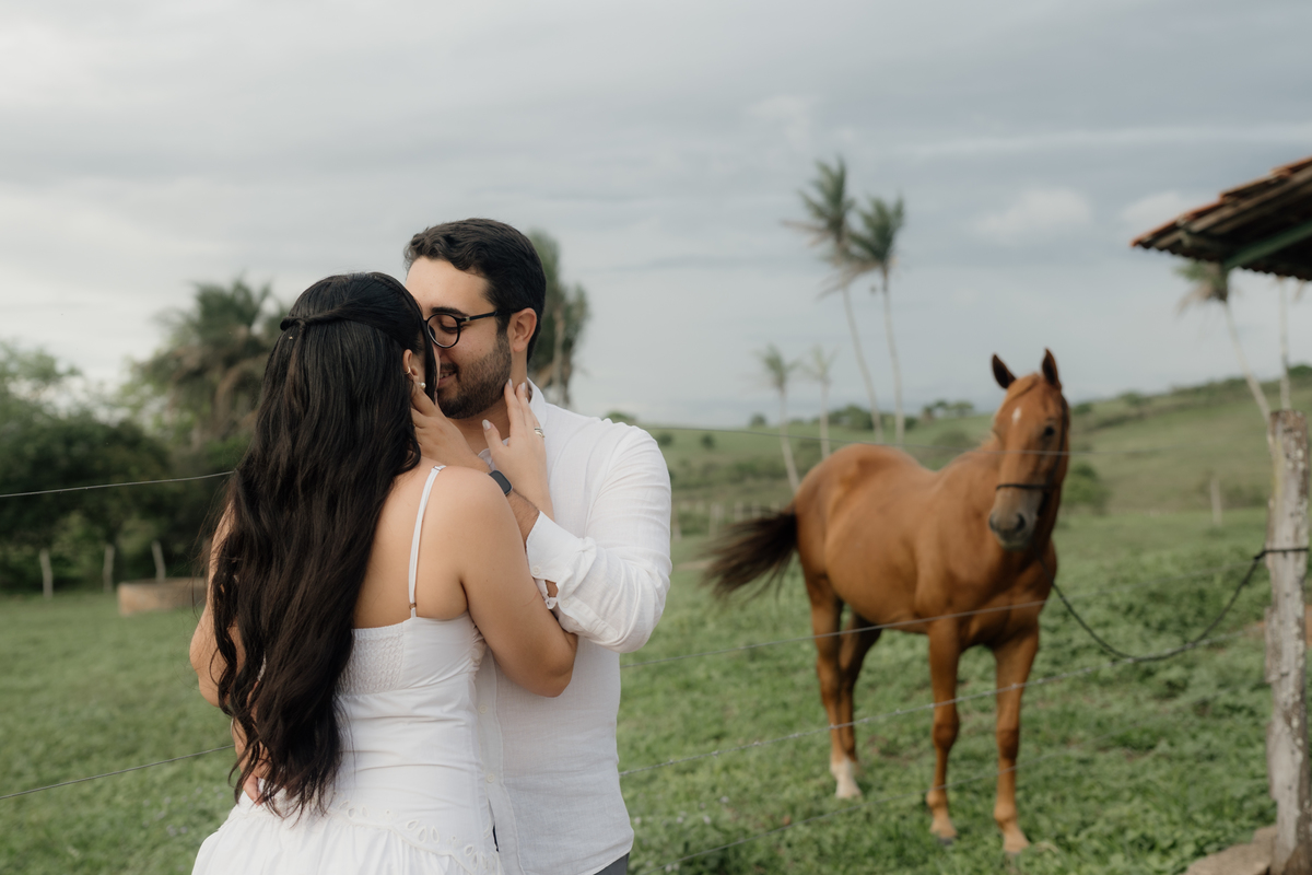 Tem algo no pôr do sol que parece feito sob medida para histórias de amor. A luz fica suave, dourada, quase como um abraço silencioso envolvendo tudo ao redor. No ensaio pré wedding, esse momento cria uma atmosfera que não precisa de muito esforço. Basta o casal estar ali, presente, vivendo o que sente.